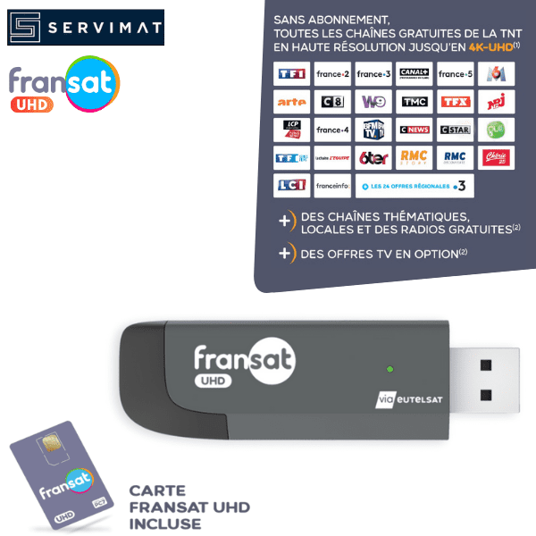 Clé TV USB FRANSAT UHD avec carte FRANSAT – réception TNT satellite HD & 4K